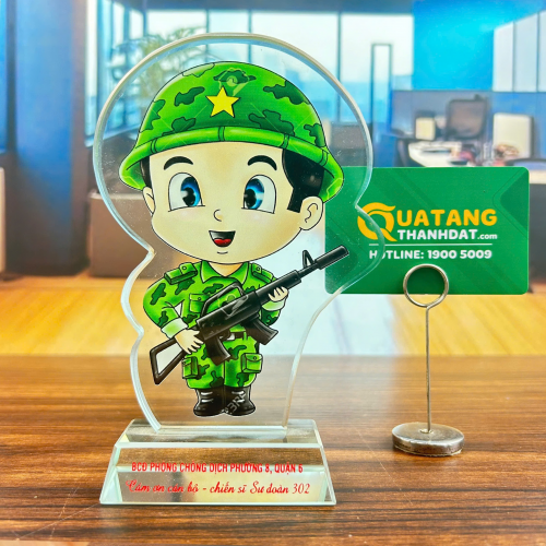 Kỷ niệm chương Chibi Chú Bộ Đội – Thiết kế dễ thương và chất liệu thủy tinh cao cấp sẽ là dòng sản phẩm quà tặng, kỷ niệm chương cho hoạt động công ty, chương trình ngoại khóa hoặc tổ chức trao tặng. Nhằm vinh danh, khen thưởng hay các cuộc thi, hoạt động được tổ chức qui mô tại cơ quan, doanh nghiệp.