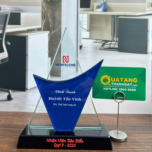 Quà tặng Pha lê Thành Đạt xin giới thiệu đến quý khách hàng chiếc Kỷ niệm chương tam giác hai lớp làm từ chất liệu thủy tinh hoặc pha lê cao cấp, hạng sang mang đến sự sang trọng, tinh tế và bền đẹp mang phong cách hiện đại. Chiếc kỷ niệm chương pha lê ngôi sao sẽ là món quà tặng lưu niệm ý nghĩa để tôn vinh hoặc ghi nhận công lao đóng góp của những thành viên xuất sắc có những đóng góp và cống hiến cho cơ quan, tổ chức …